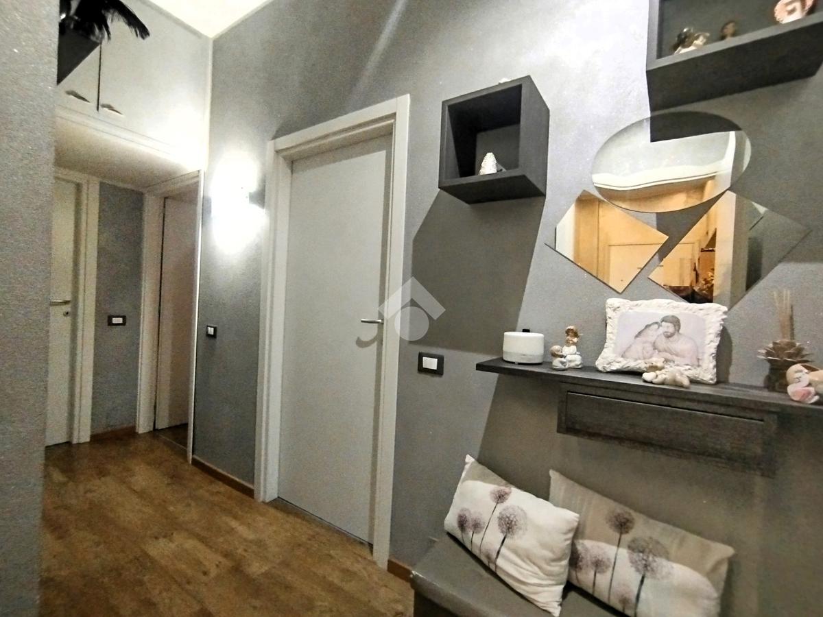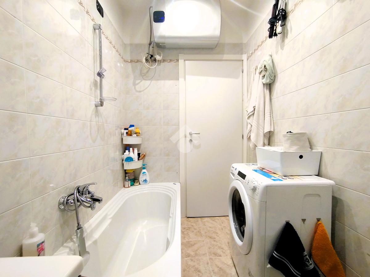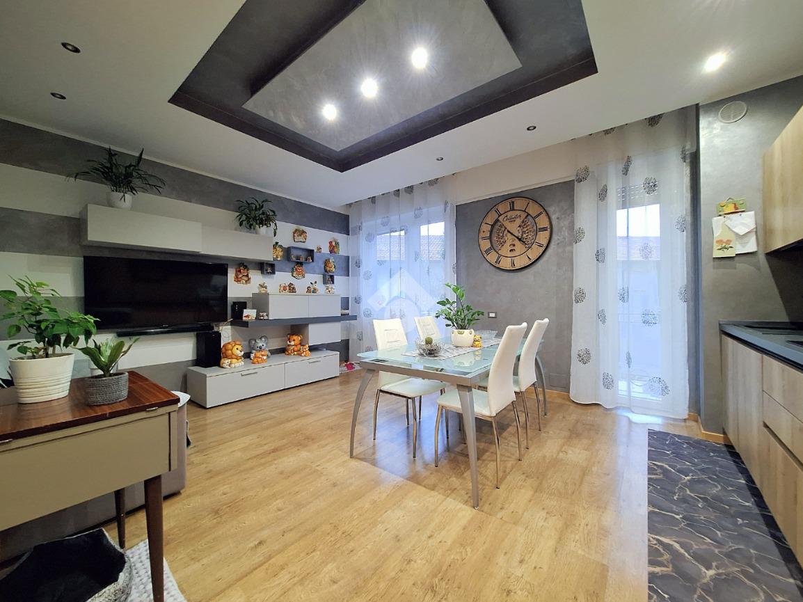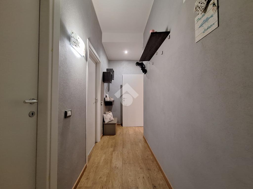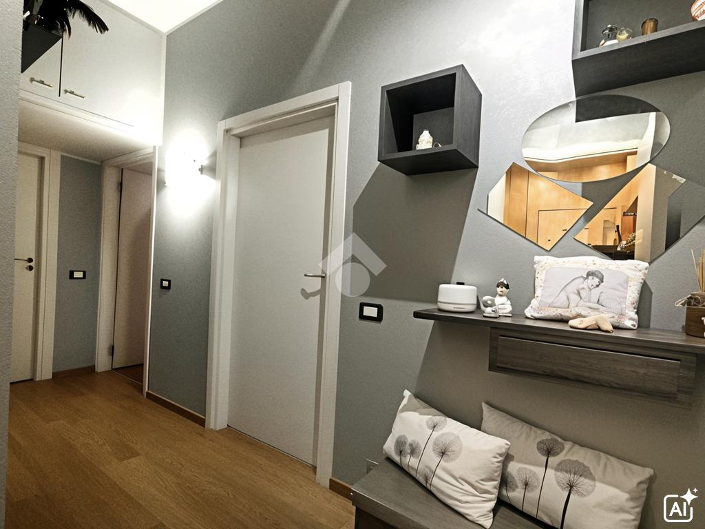 Gli interni, completamente rinnovati, si distinguono per uno stile moderno e raffinato: pavimentazione in laminato uniforme, serramenti in PVC bianchi con doppio vetro e porte interne coordinate, che donano luminosità e continuità visiva agli ambienti. Il riscaldamento semi-autonomo con contabilizzatori consente una gestione efficiente dei consumi e la regolazione indipendente della temperatura in ogni stanza.