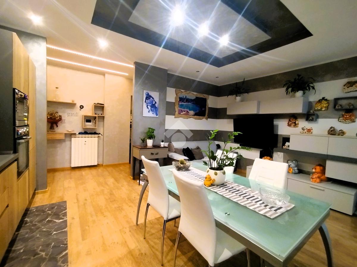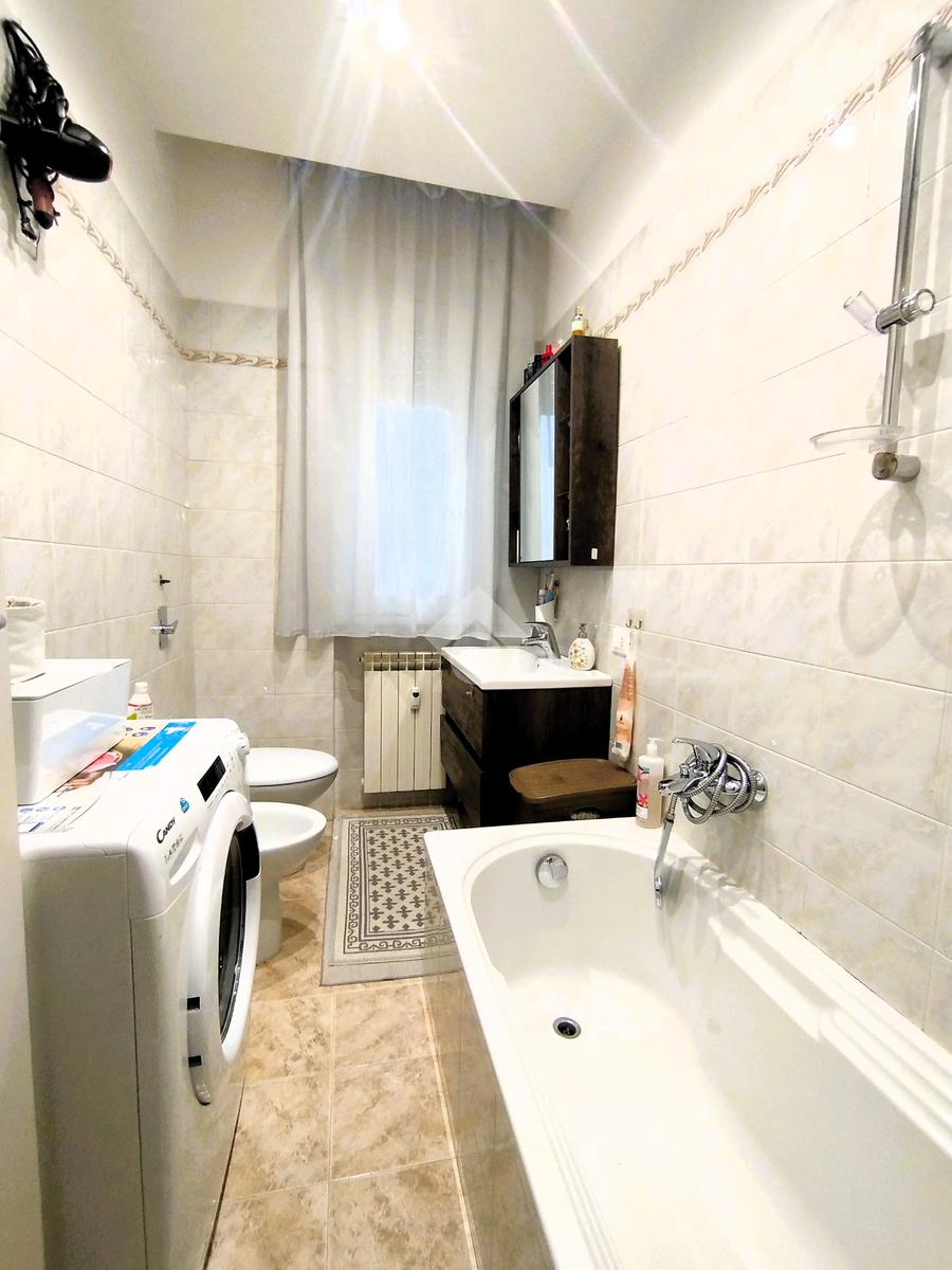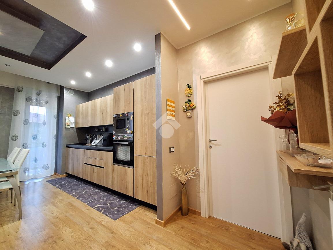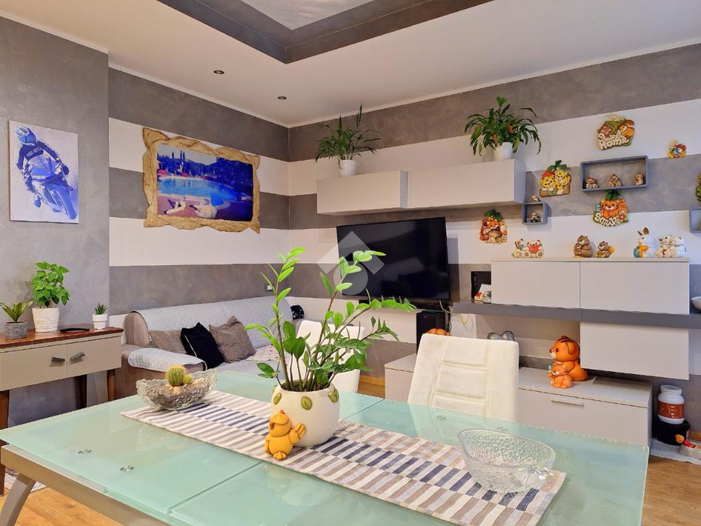 Gli interni, completamente rinnovati, si distinguono per uno stile moderno e raffinato: pavimentazione in laminato uniforme, serramenti in PVC bianchi con doppio vetro e porte interne coordinate, che donano luminosità e continuità visiva agli ambienti. Il riscaldamento semi-autonomo con contabilizzatori consente una gestione efficiente dei consumi e la regolazione indipendente della temperatura in ogni stanza.