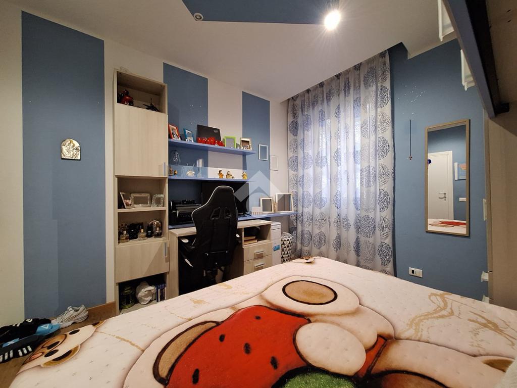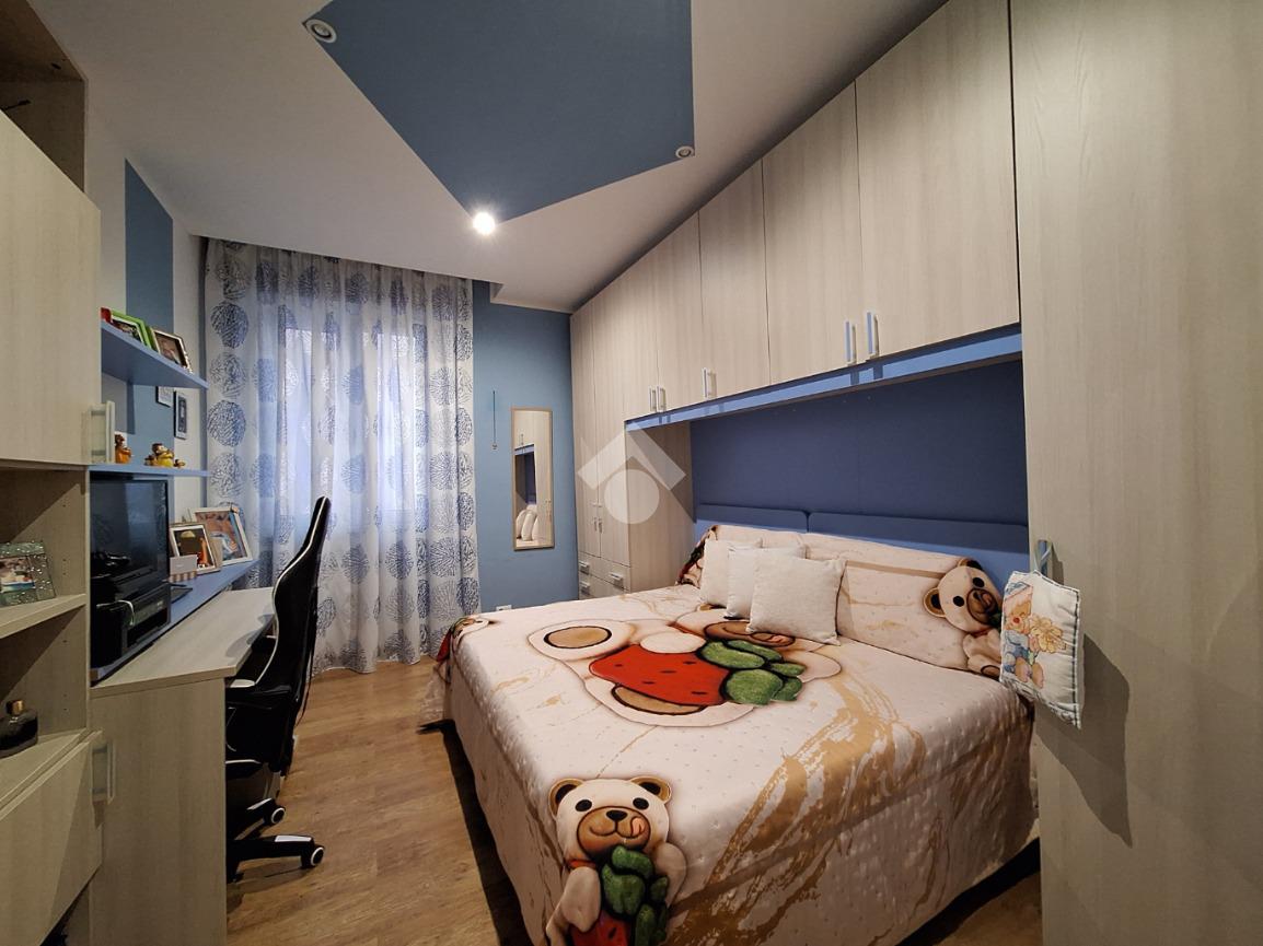 La zona notte ospita due ampie camere da letto, un bagno finestrato e un ripostiglio soppalcato che ottimizza gli spazi.