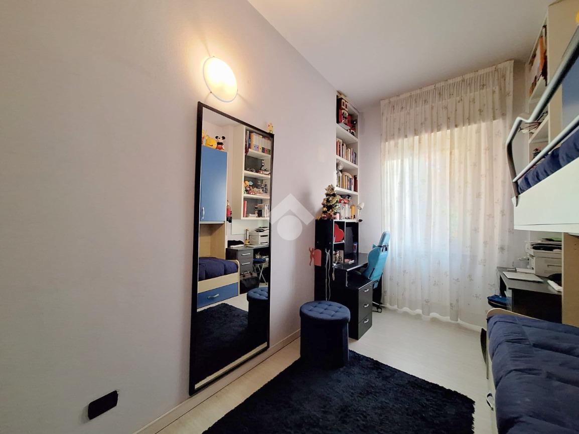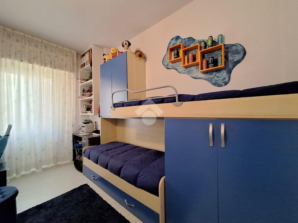 La zona notte si compone di una camera matrimoniale con bagno privato cieco, una spaziosa cameretta ed un secondo bagno finestrato e dotato di comoda vasca angolare e sanitari sospesi, dettagli che aggiungono un tocco di comfort e modernità.