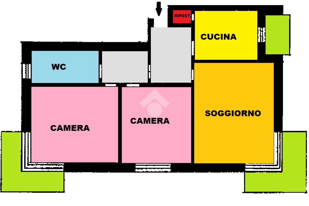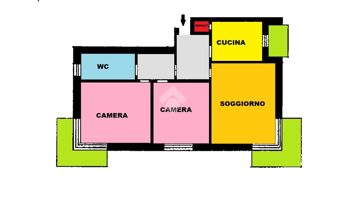 La soluzione inoltre gode di spazi accessori utili ad organizzare al meglio la vivibilità della casa: l'ingresso è ampio ed arredabile, è presente un piccolo ripostiglio accanto alla cucina ed il disimpegno della zona notte gode di un'imponente armadiatura a muro.