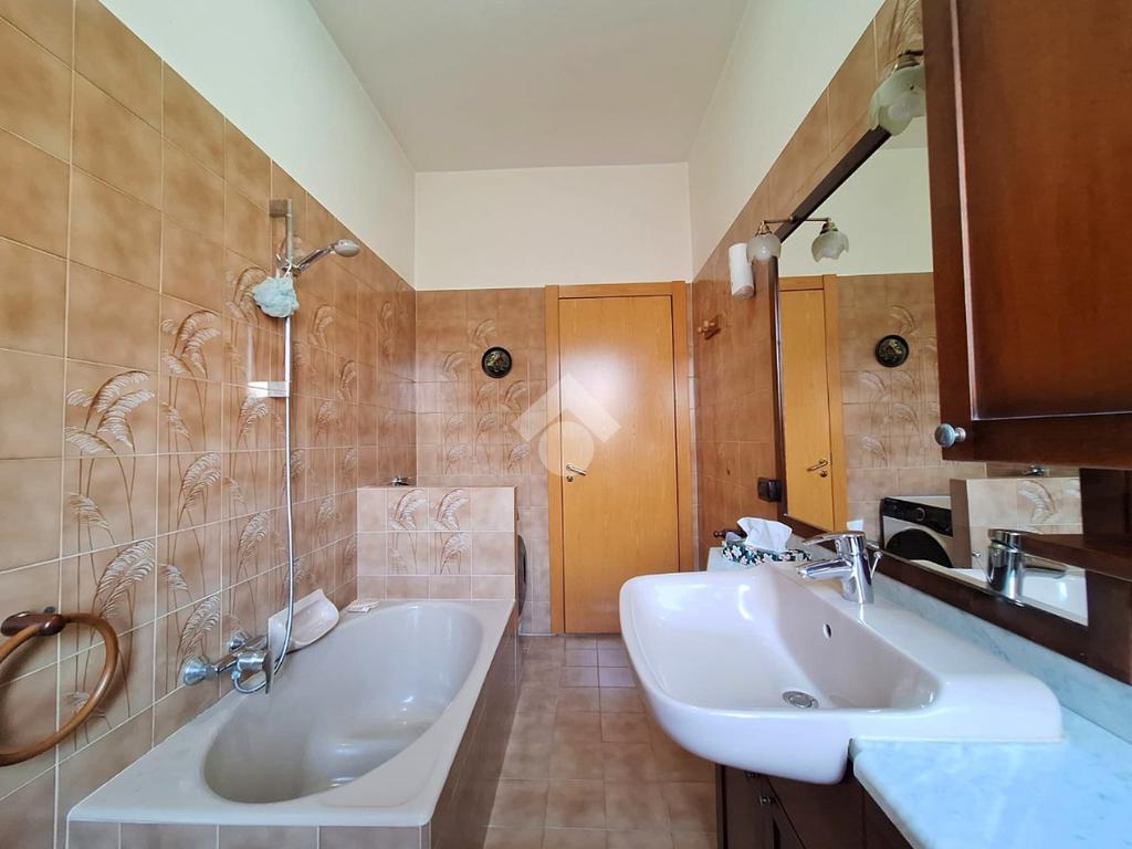 Il bagno è finestrato, ha spazi ben organizzati ed è dotato di vasca ed attacchi per la lavatrice.