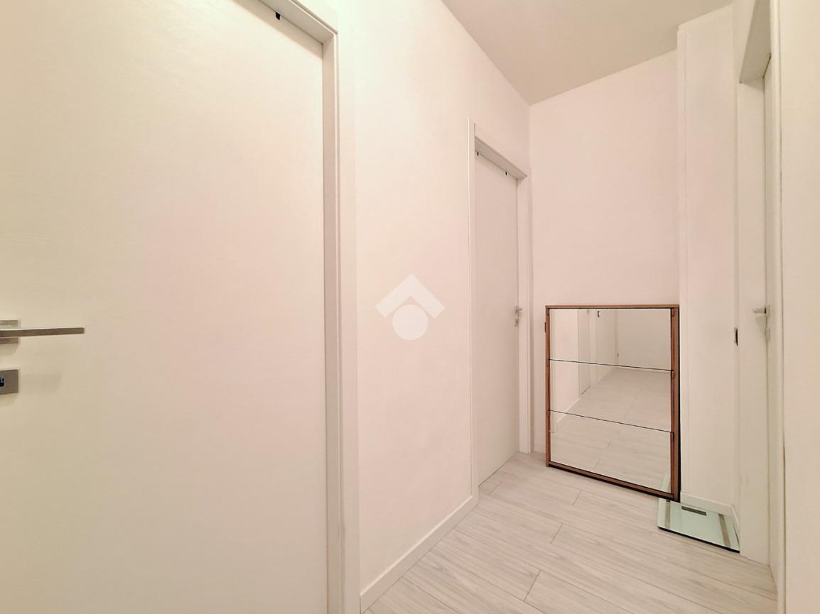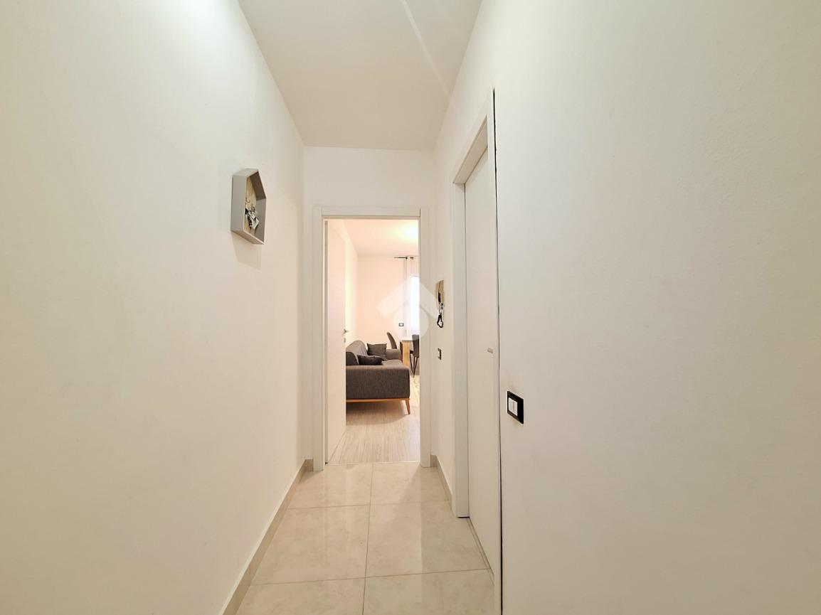 Il portoncino blindato d'ingresso si affaccia su un comodo disimpegno finestrato dove è possibile posizionare appendiabiti e scarpiera.